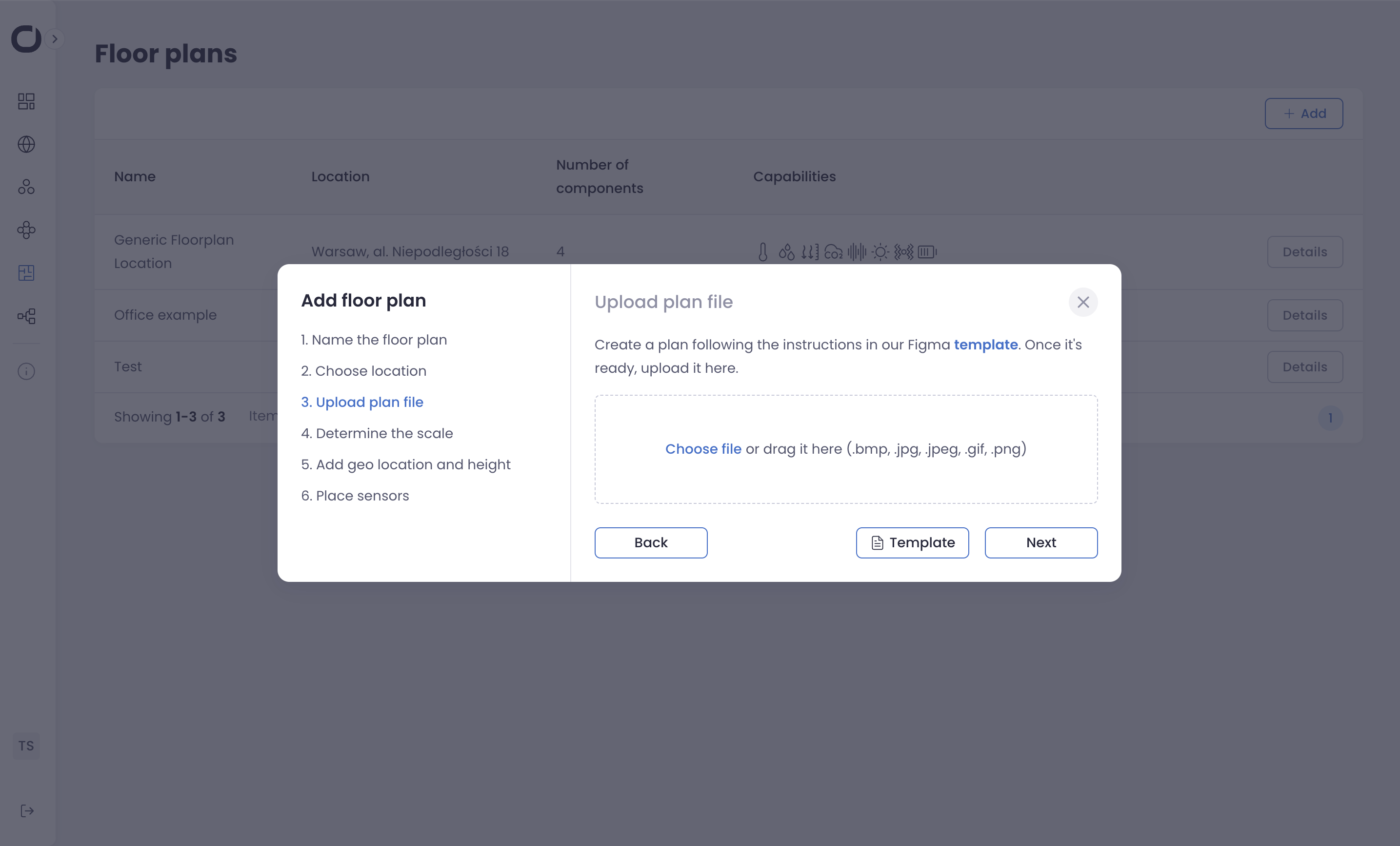 This guide explains how to create a custom floor plan and position your devices on it for a visual representation of your sensor network. This feature provides flexibility and allows you to tailor the visualization to your specific environment.