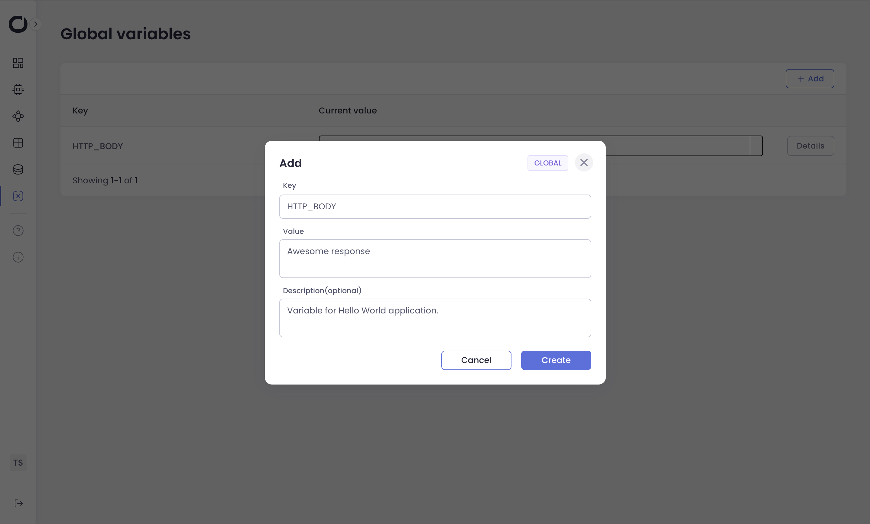 3. Set the Key to HTTP_BODY and the Value to Awesome response