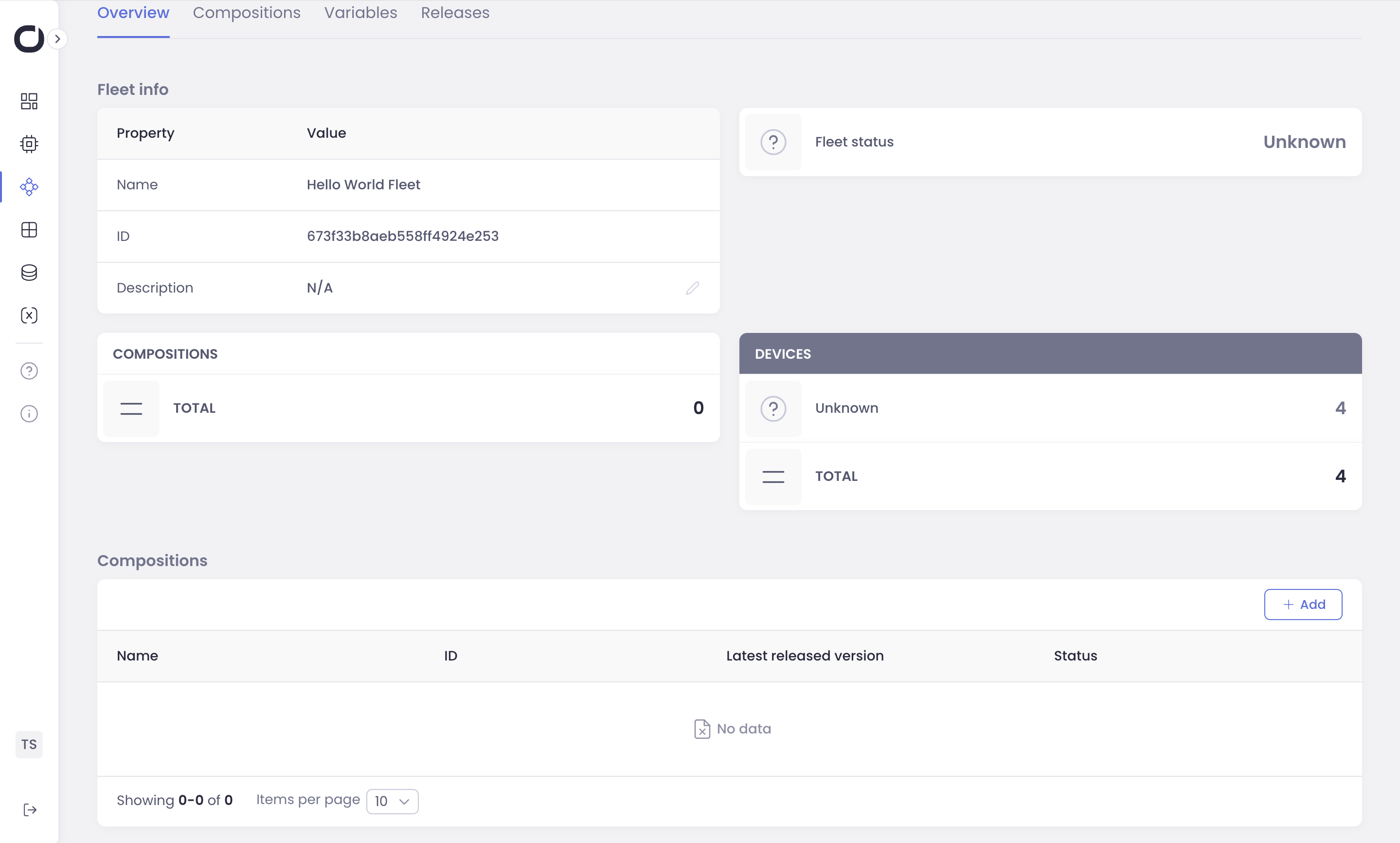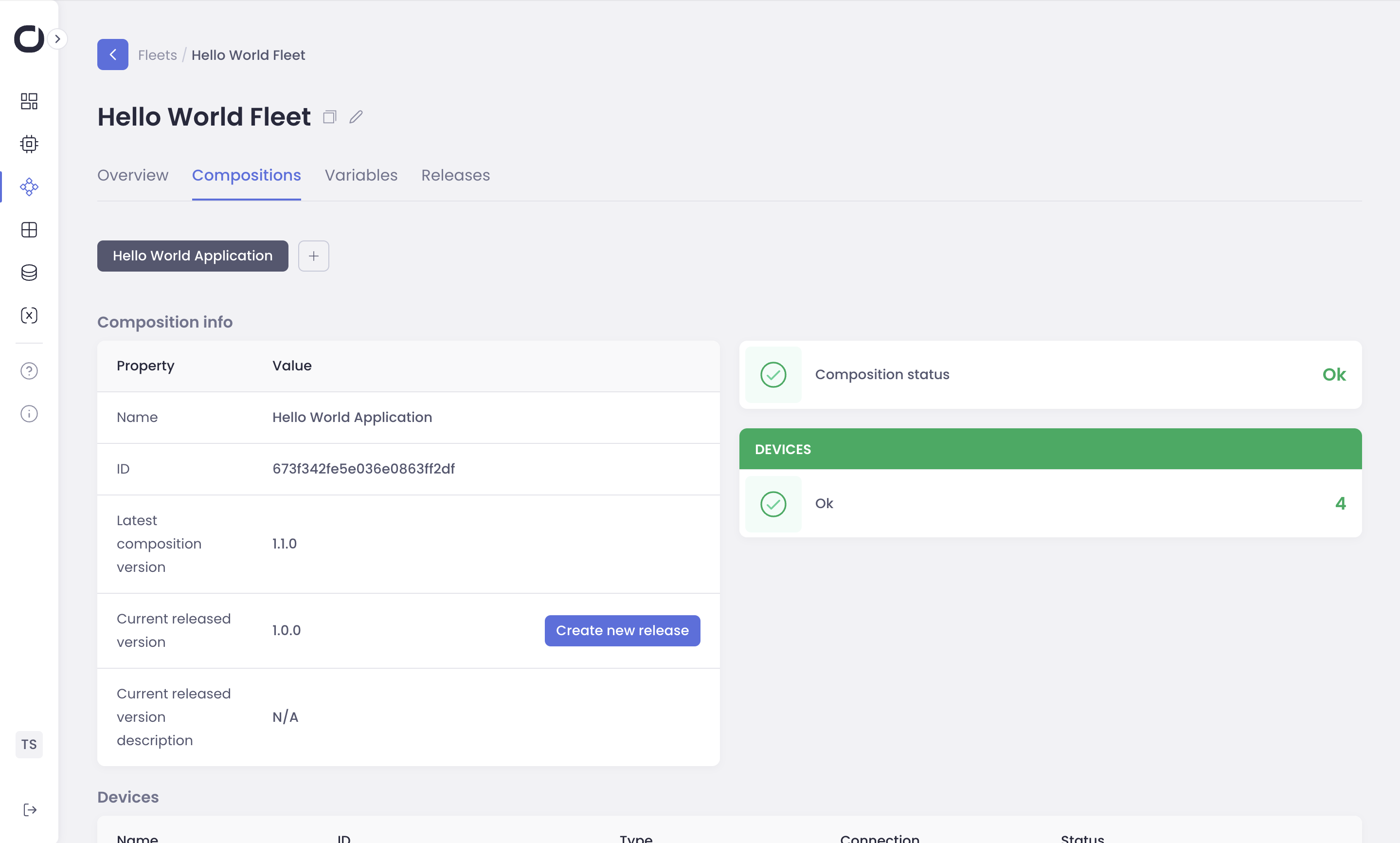 1. On the fleet page, go to the Compositions tab and find the Devices table.