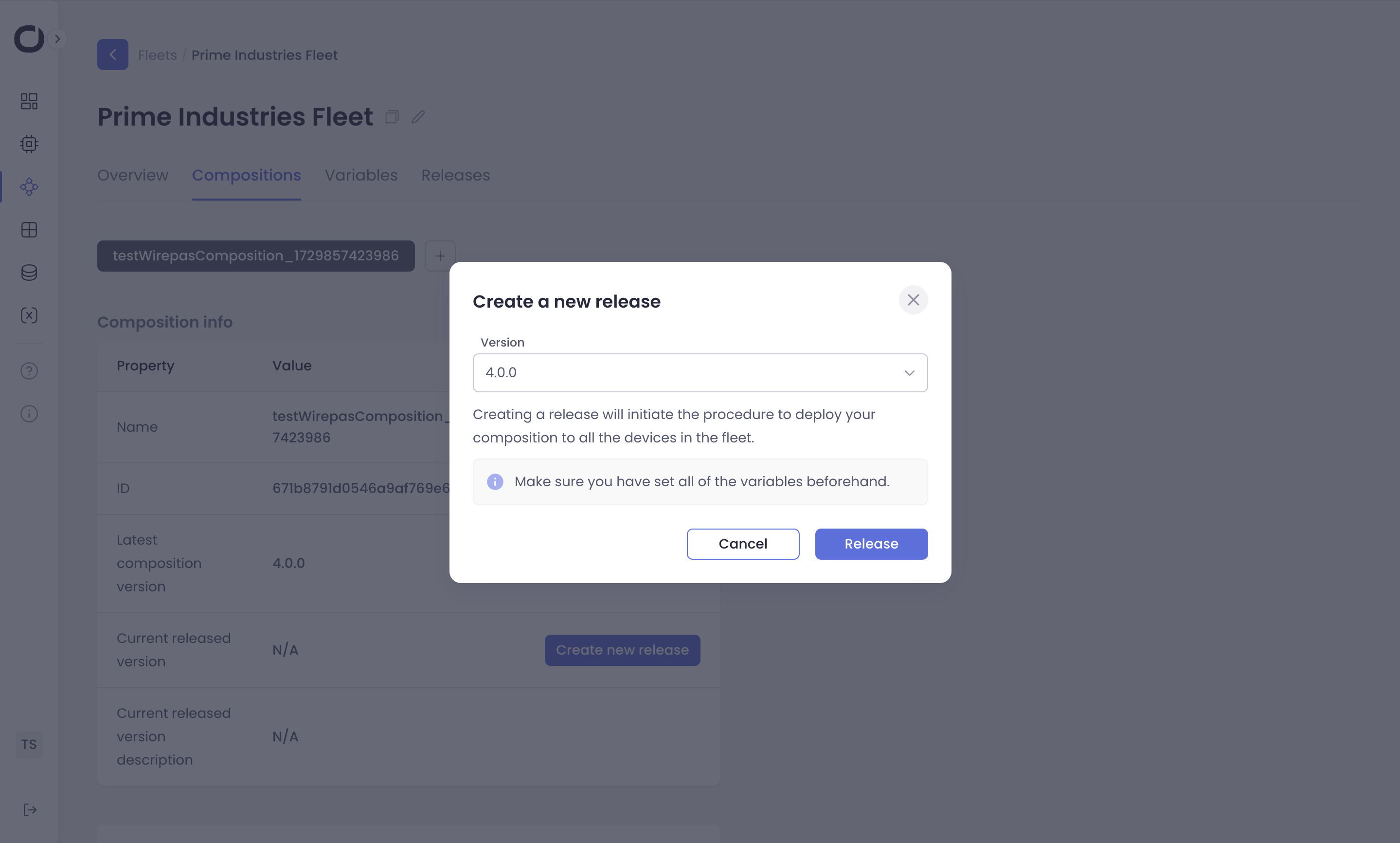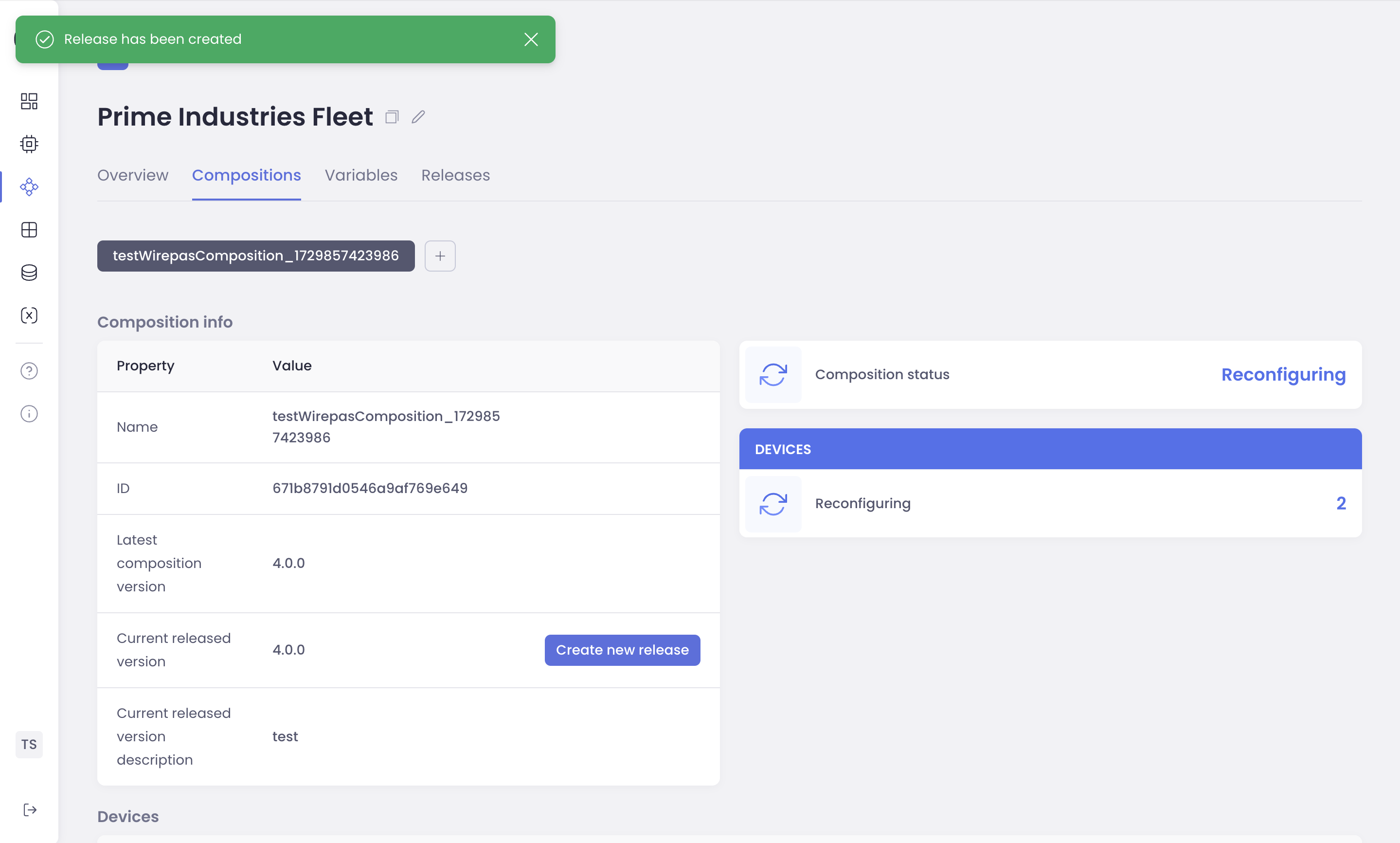 Your new release has been created. Please wait a few minutes for compositions to be deployed on all of the devices in the fleet.