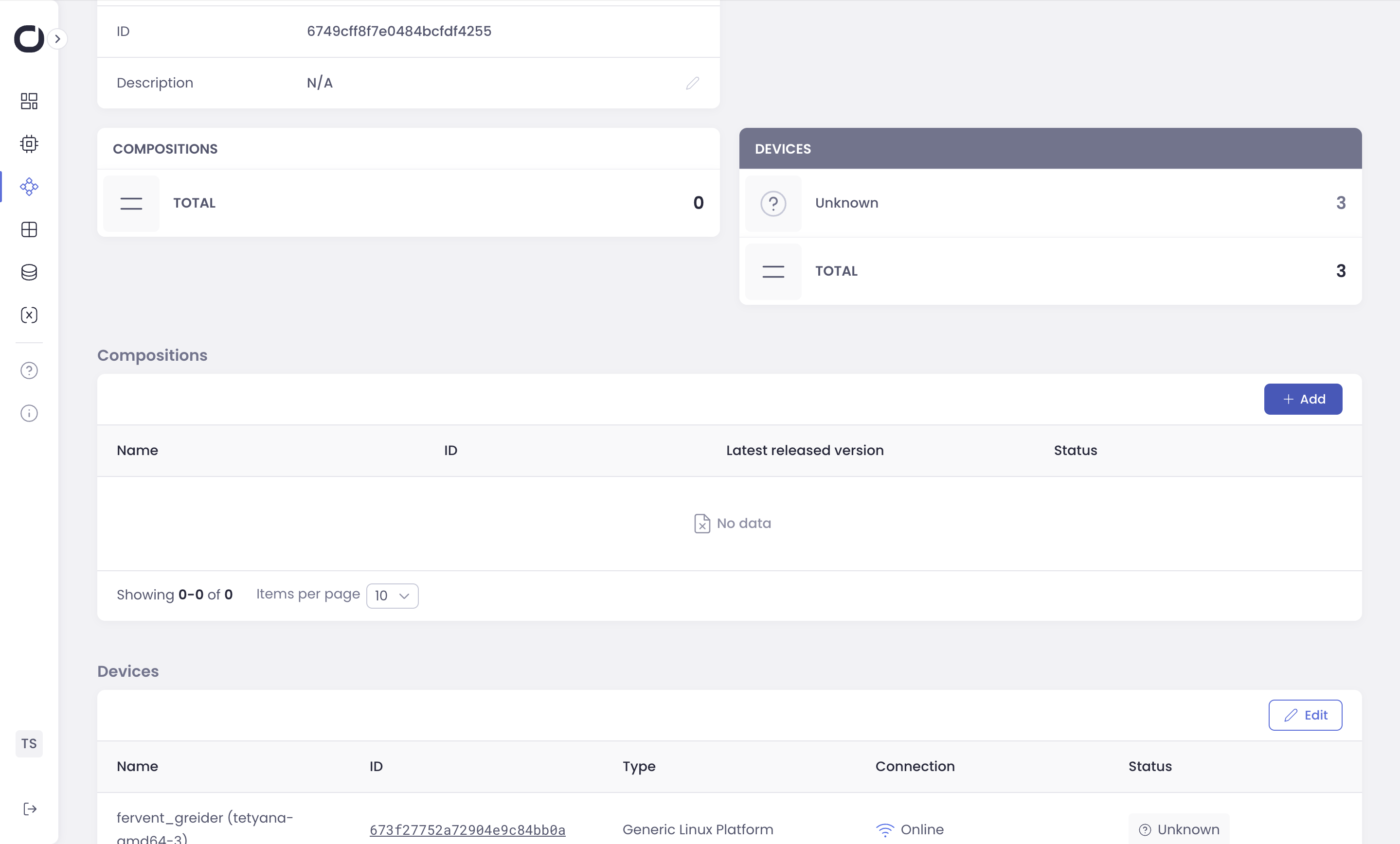 1. Go to Device Details: On your fleet’s “Compositions” tab, click a device’s ID to see its details.