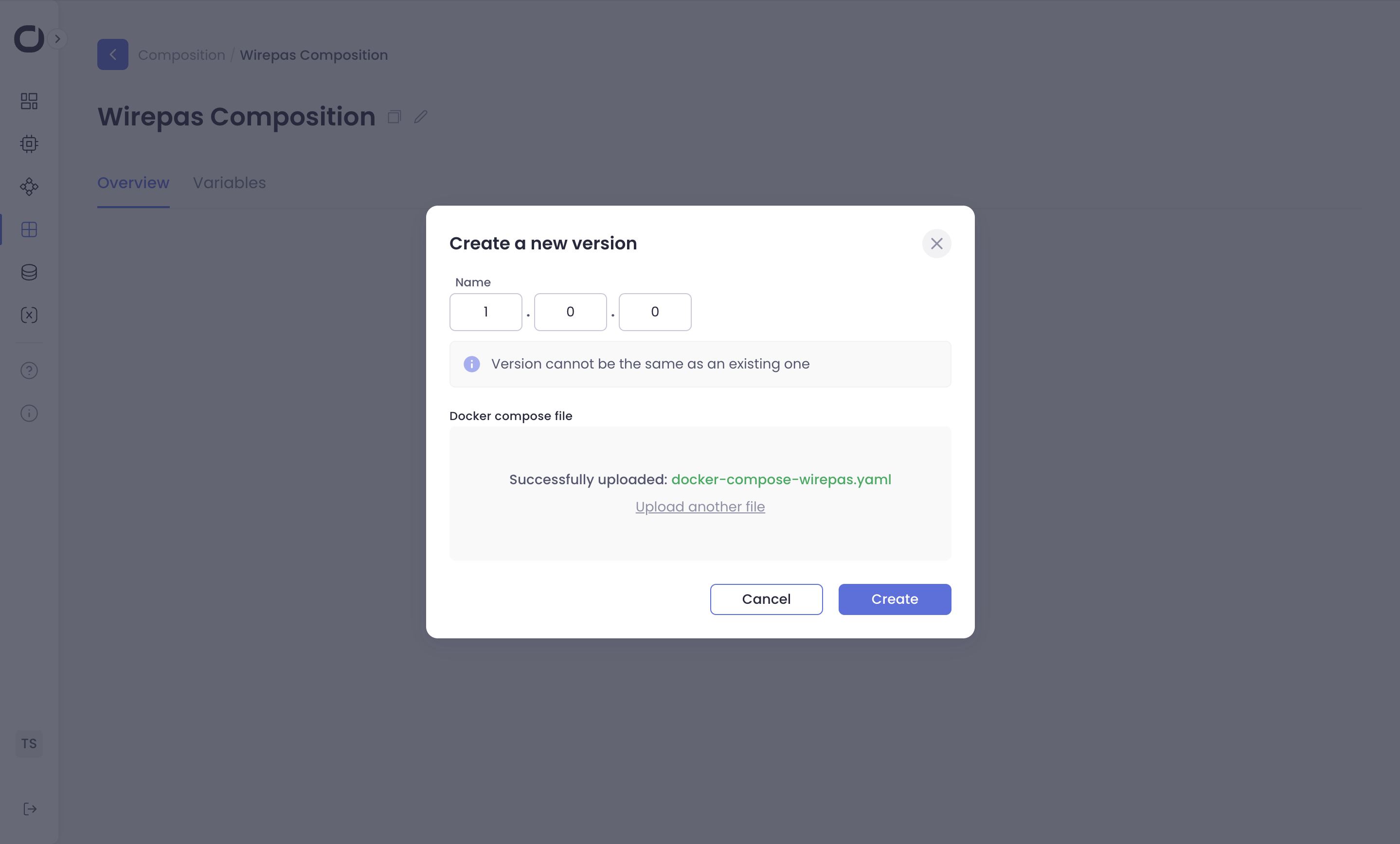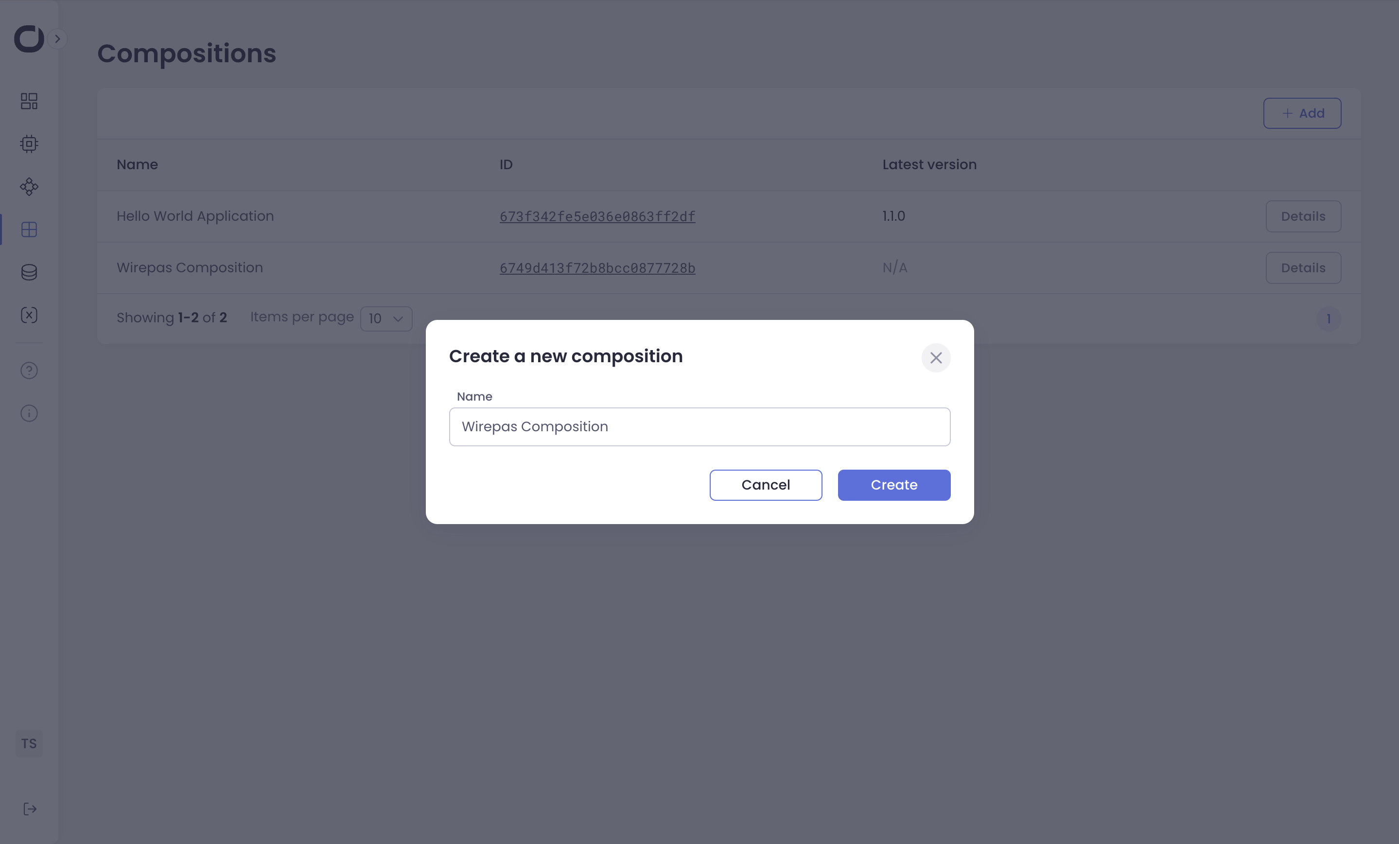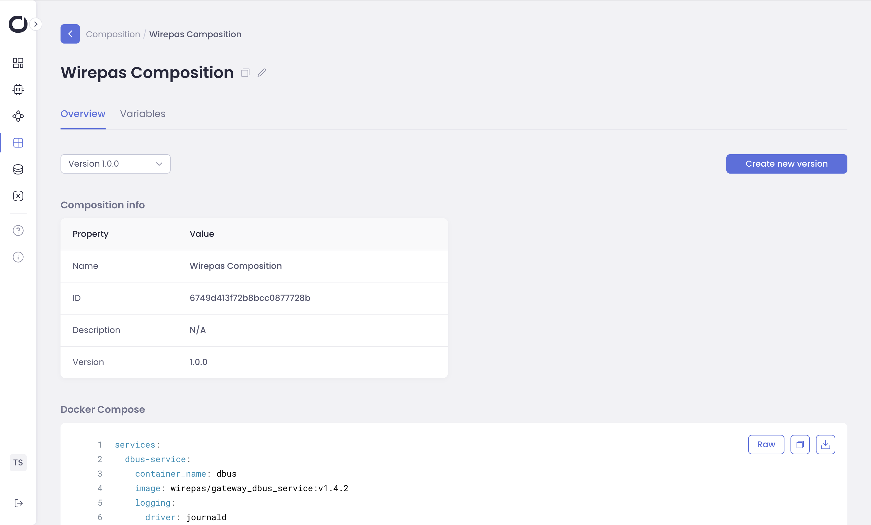 2. Select and Release: Choose your Wirepas composition and click “Create new release”.