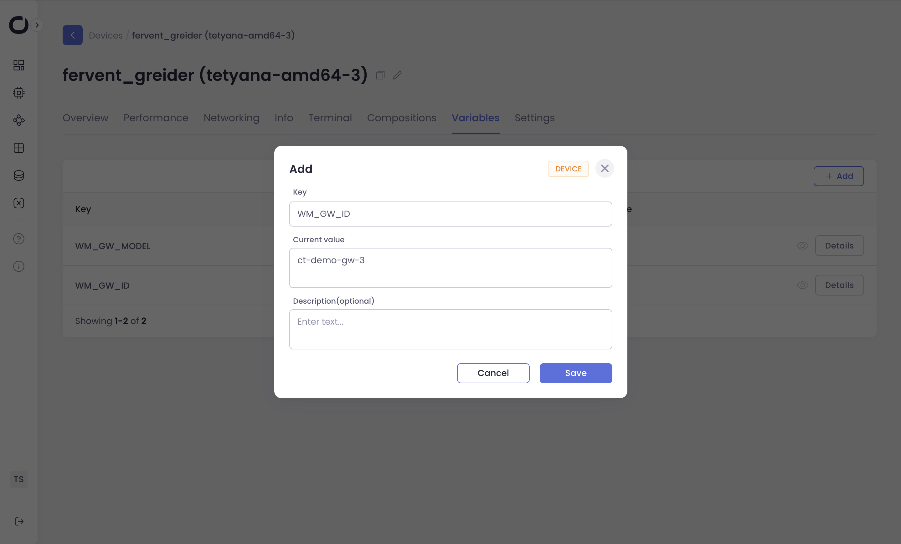 1. Go to Device Variables: Navigate to a device within your fleet and access its “Variables” tab.